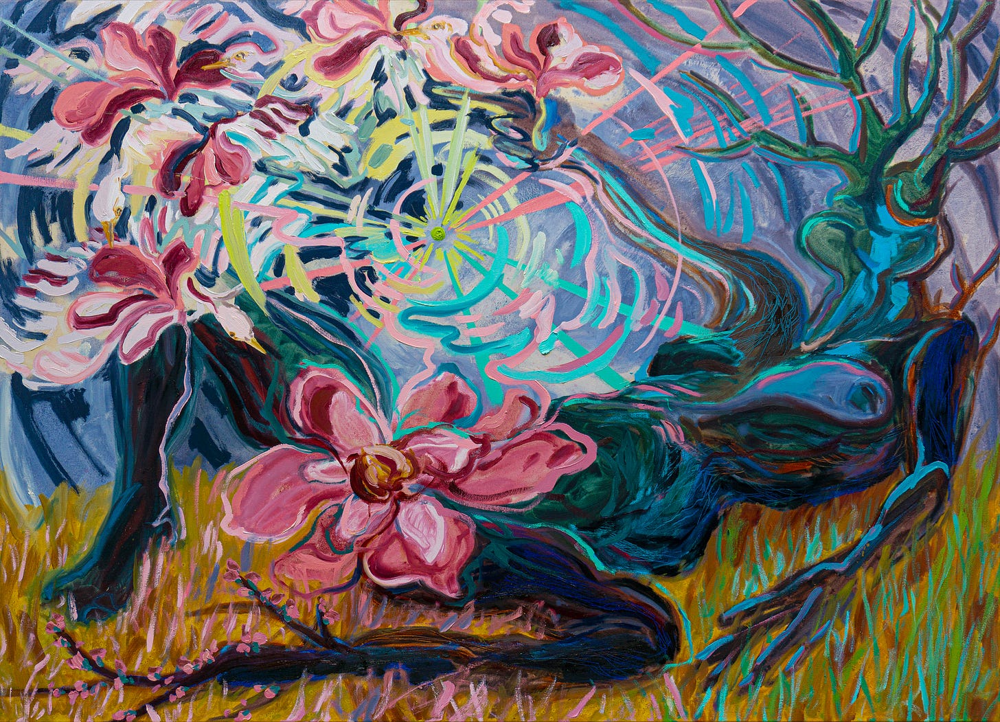 Painting can be read in different contexts – political, historical, intimate. In Marina’s work, two elements stand out: the body and light as a generator of reality. What exists is us and our surroundings, separate and seemingly stable entities. But is that the only reality available to us? Modern artists explored the body as a conduit for affect circulating between the human and the nonhuman, the physical and the ethereal. It is within this lineage that Marina’s work takes its place: as an artist who must remain close to her fantasies in order to stay alert to the truths they contain.
