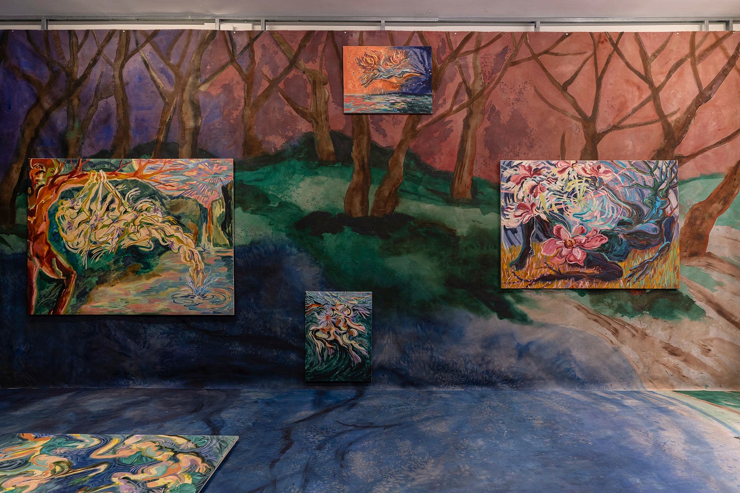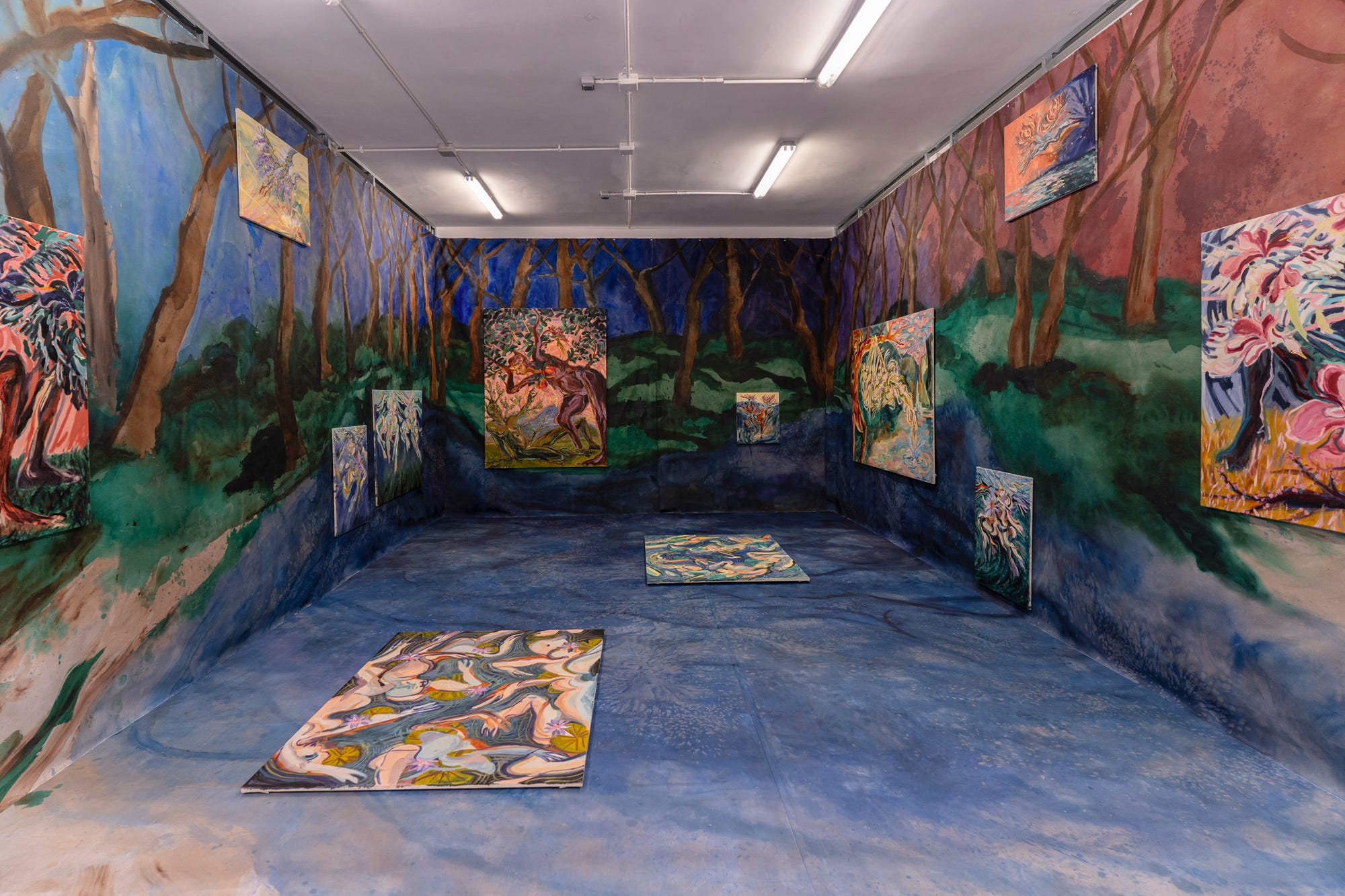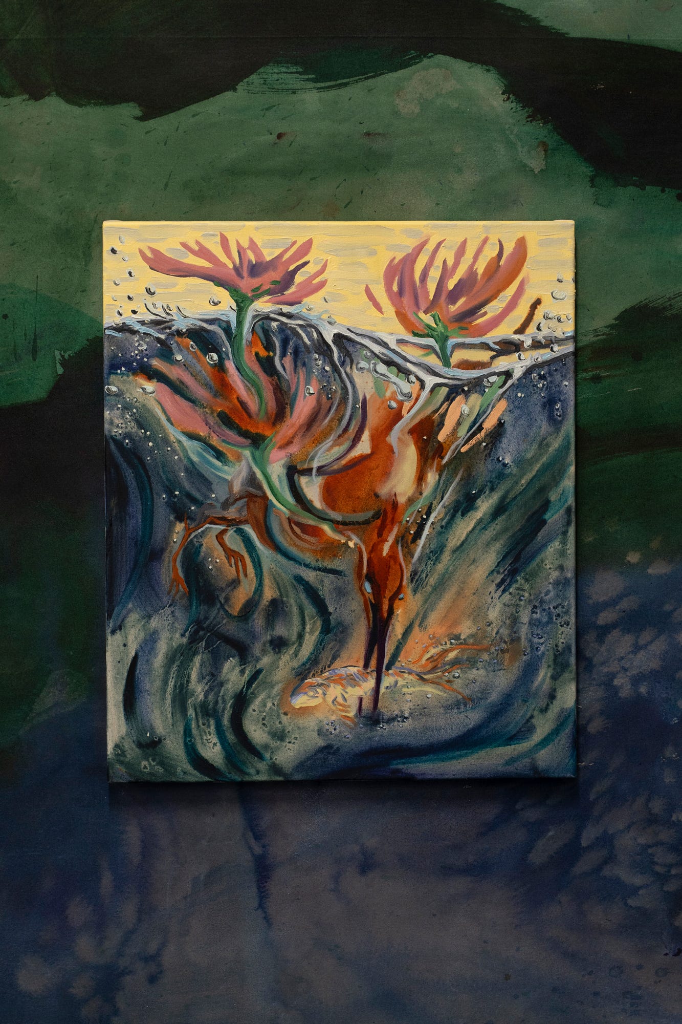 The bodies Marina paints have a liquid condition – not porous boundaries, but continuous flows. Between the vegetal and the human, the probable and the possible, these bodies shift form again and again, without ever closing. Entering this exhibition – one that does not allow us to forget it has been created by someone – we too become liquid: background and foreground, container and contained, texture and witness. This alternative reality may originate from that sensation in the studio, when one encounters a painting and knows it has just been made and could be made again. On the walls of a gallery or museum, that possibility no longer exists. Here, however, the intimacy of looking returns us to that experience.
