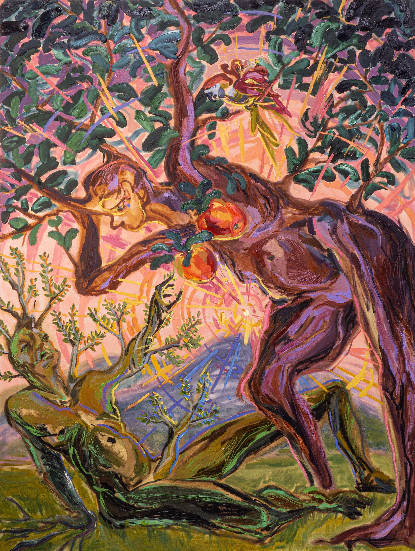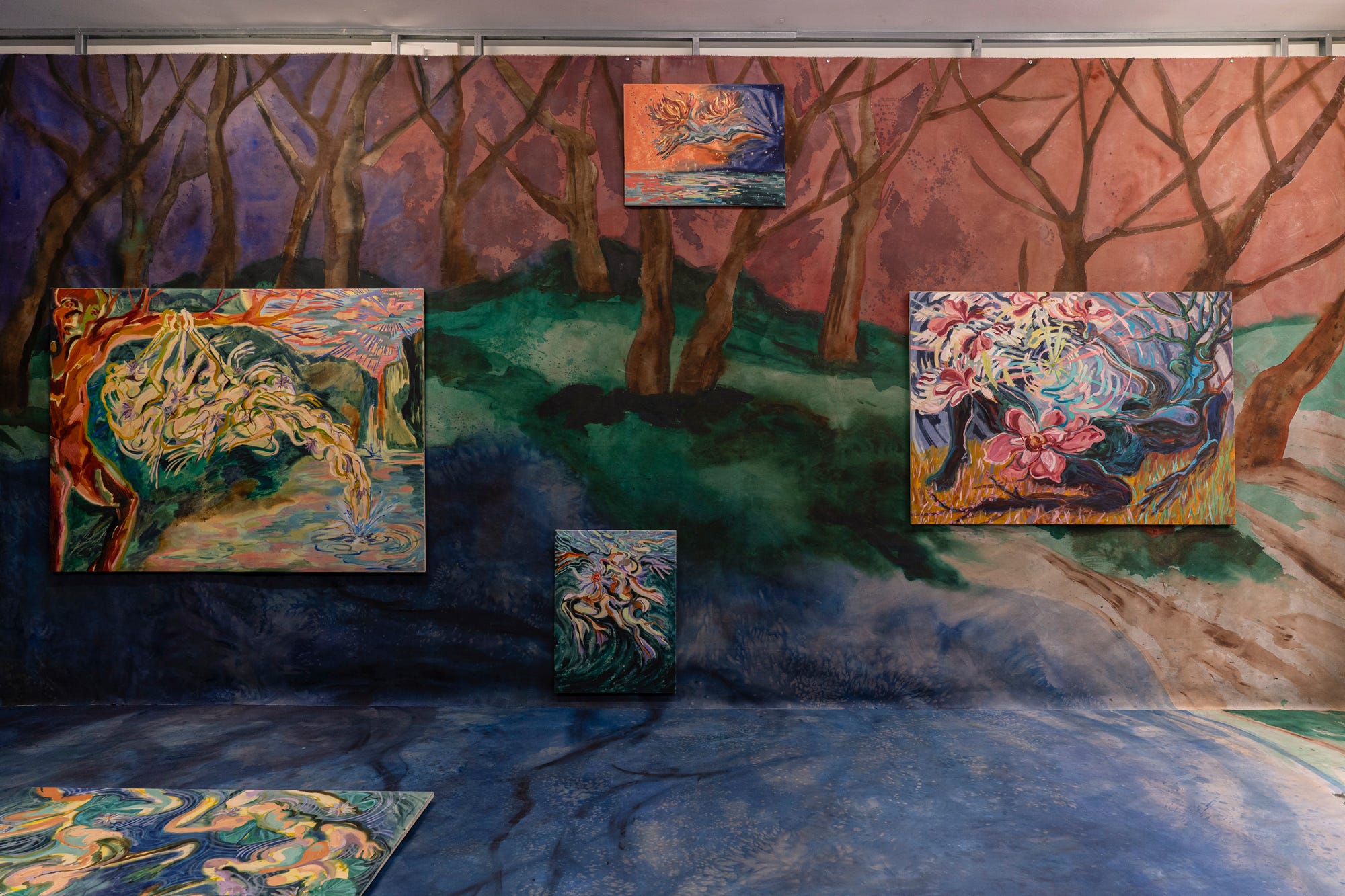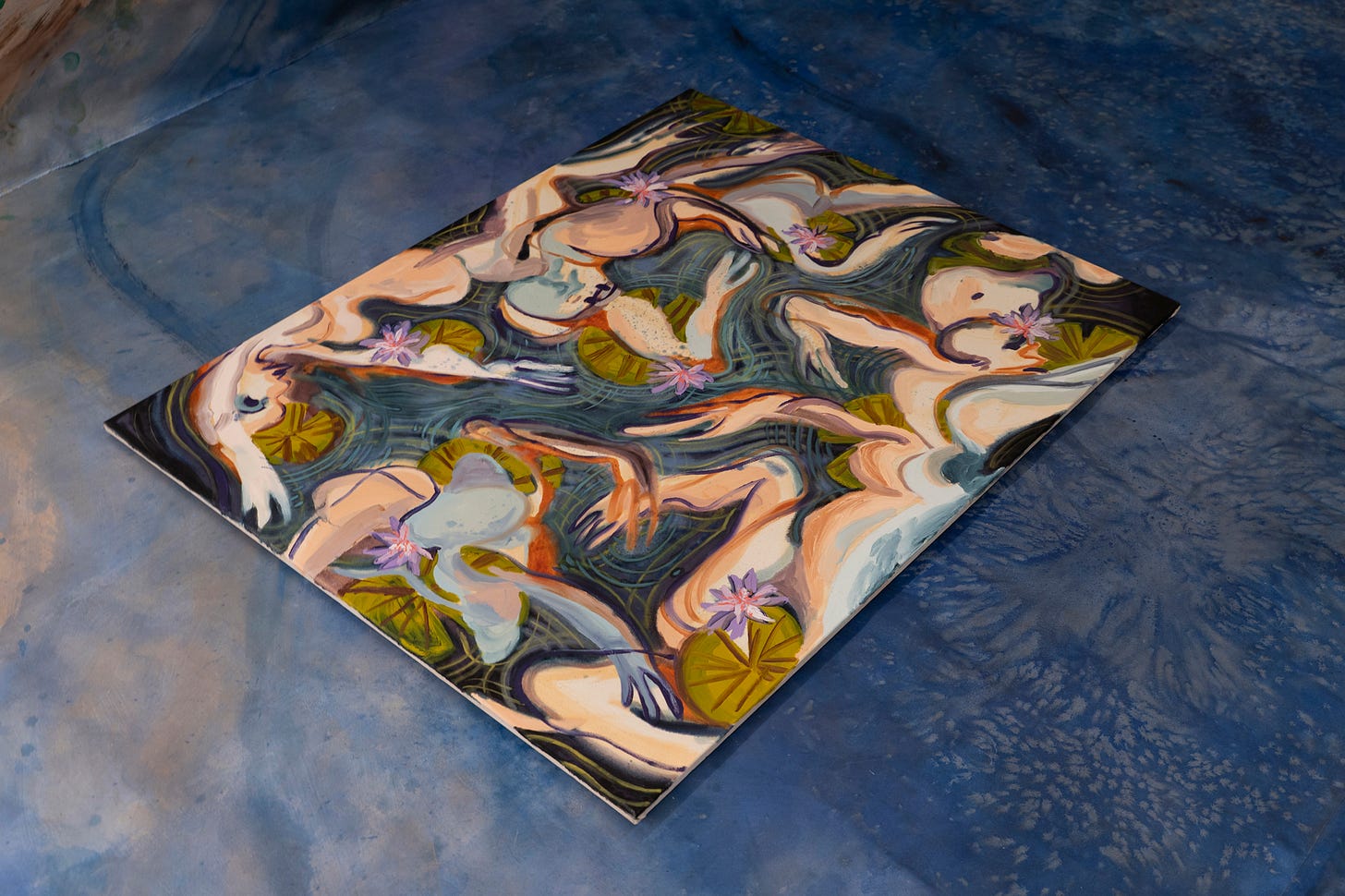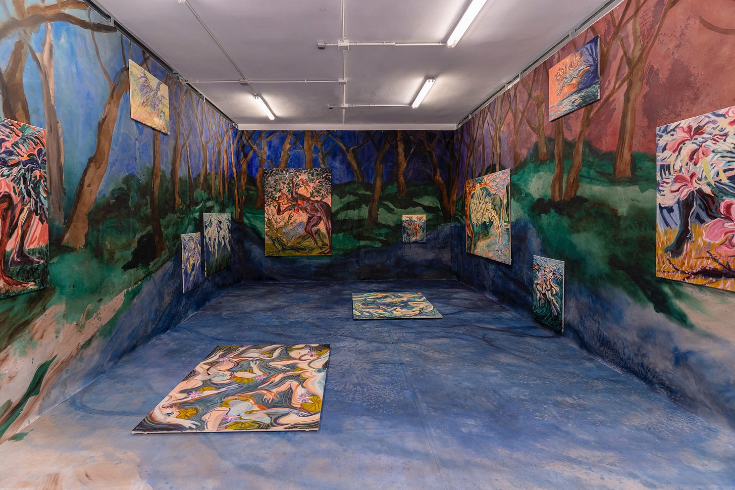 The bodies Marina paints have a liquid condition – not porous boundaries, but continuous flows. Between the vegetal and the human, the probable and the possible, these bodies shift form again and again, without ever closing. Entering this exhibition – one that does not allow us to forget it has been created by someone – we too become liquid: background and foreground, container and contained, texture and witness. This alternative reality may originate from that sensation in the studio, when one encounters a painting and knows it has just been made and could be made again. On the walls of a gallery or museum, that possibility no longer exists. Here, however, the intimacy of looking returns us to that experience.